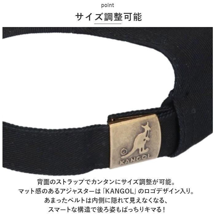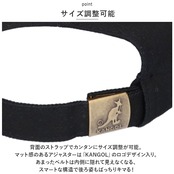 ・背面のストラップでカンタンにサイズ調整が可能。マット感のあるアジャスターは「KANGOL」のロゴデザイン入り。あまったベルトは内側に隠れて見えなくなる、スマートな構造で後ろ姿もばっちりキマる!