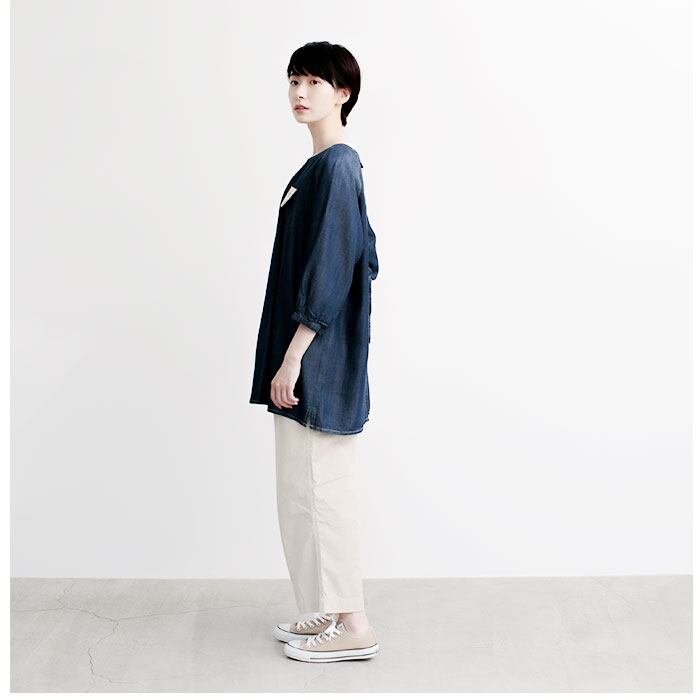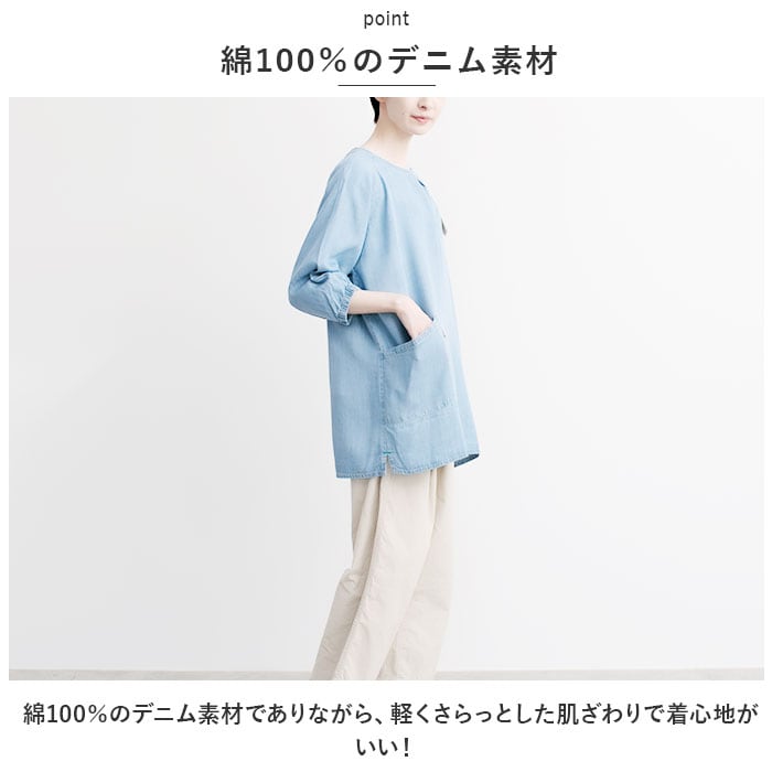 ・綿100%のデニム素材でありながら、軽くさらっとした肌ざわりで着心地がいい!