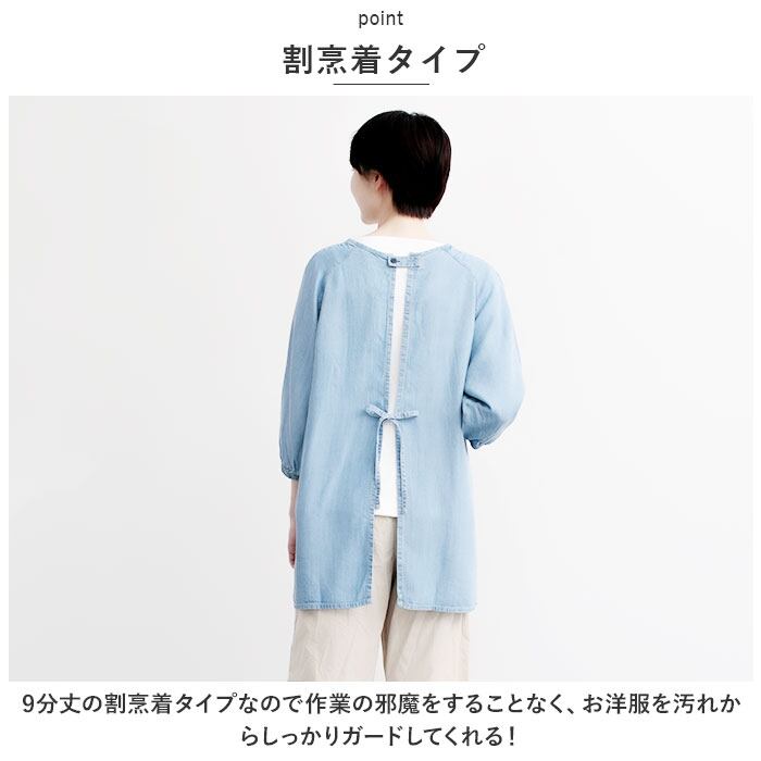 COCOWALK エプロン 通販 ココウォーク 割烹着 スモック かっぽう着 かっぽうぎ デニムエプロン おしゃれ 保育士 介護士 かわいい 9分袖 レディース シンプル 母の日 敬老の日 ガーデニング DIY ギフト キッチンウェア