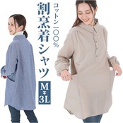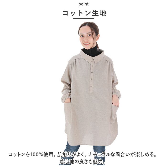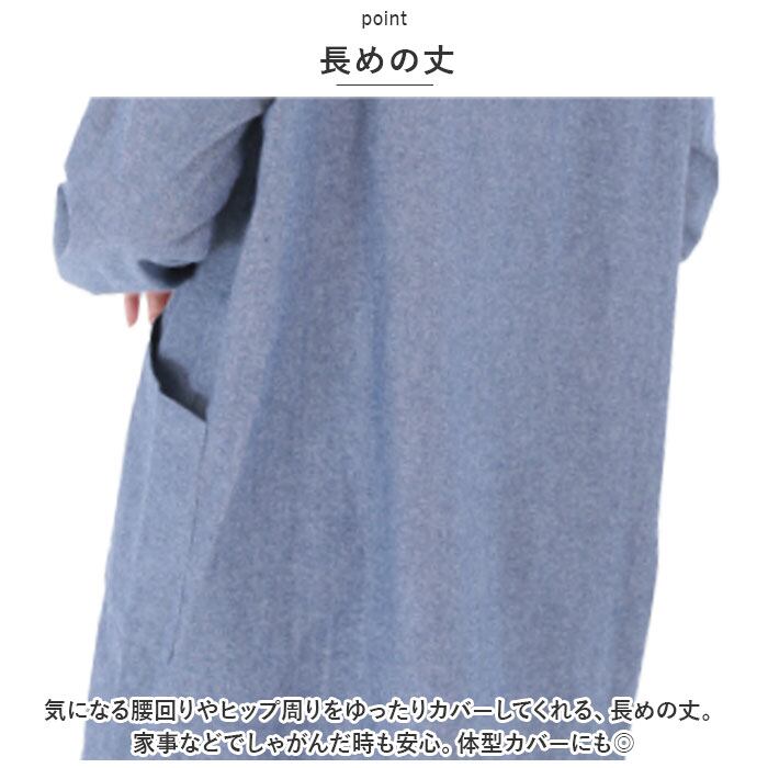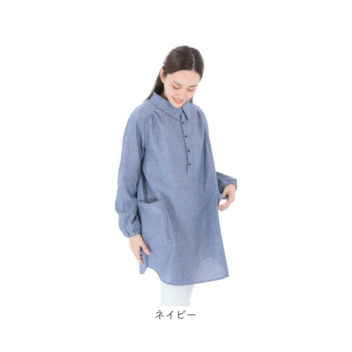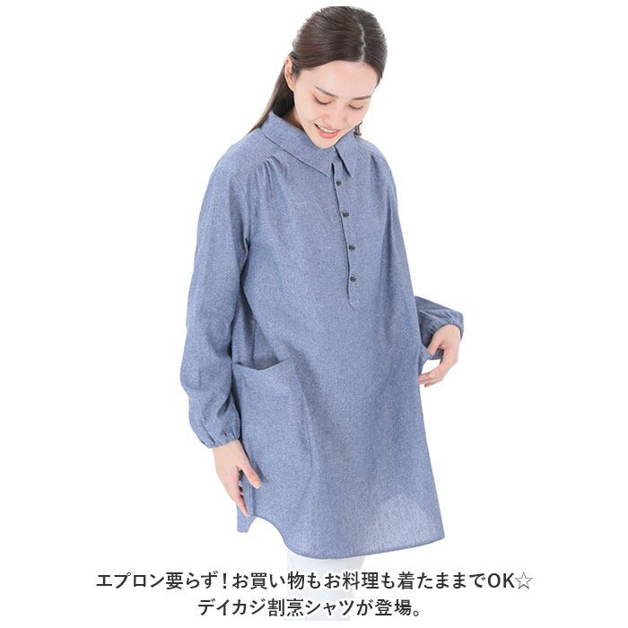 割烹着 シャツ レディース 通販 かっぽう着 スモック ブラウス エプロン デイカジ割烹シャツ 襟付き 長め ゆったり スタイリッシュ カジュアル 綿 綿100% おしゃれ ギフト 贈り物