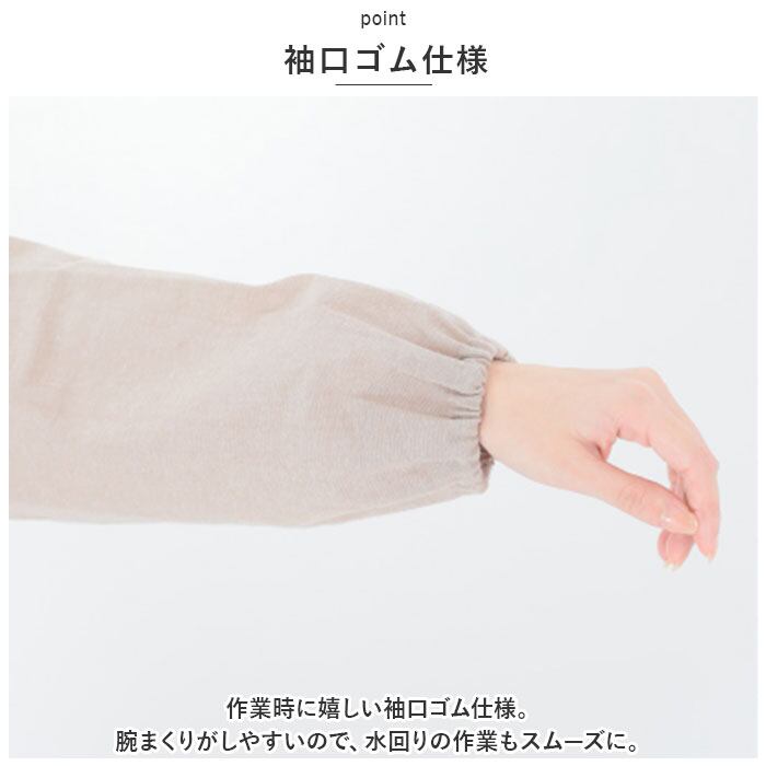 ・作業時に嬉しい袖口ゴム仕様。腕まくりがしやすいので、水回りの作業もスムーズに。
