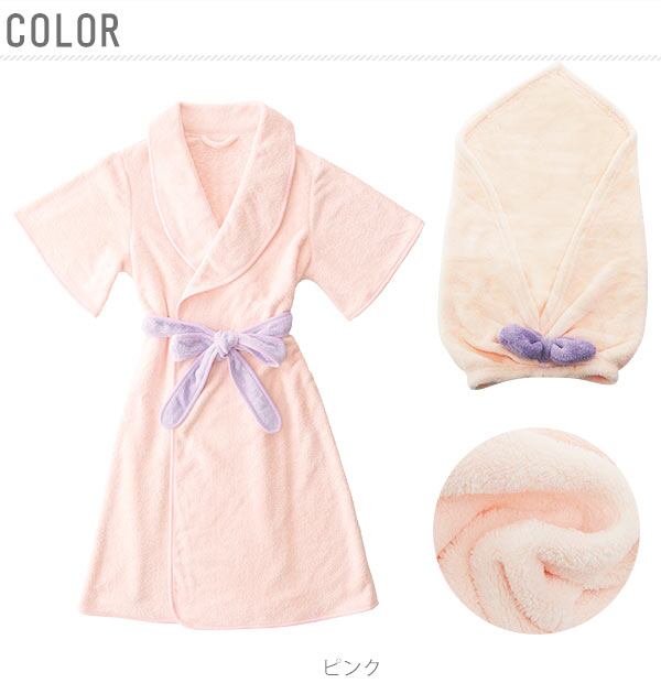 ふわふわでマシュマロみたいな肌ざわり。マイクロファイバー素材で吸水・速乾の、やわらかいバスローブとヘアターバンのセットです。