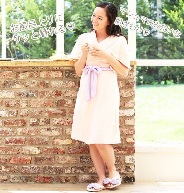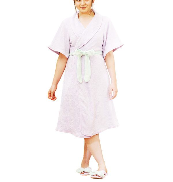 5分袖タイプで軽量なので、お風呂上りにサッと着られてくつろげます。Aラインのシルエットも女子力高め。