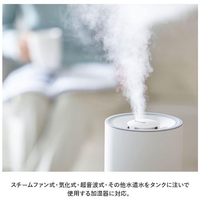 ・スチームファン式・気化式・超音波式・その他水道水をタンクに注いで使用する加湿器に対応。