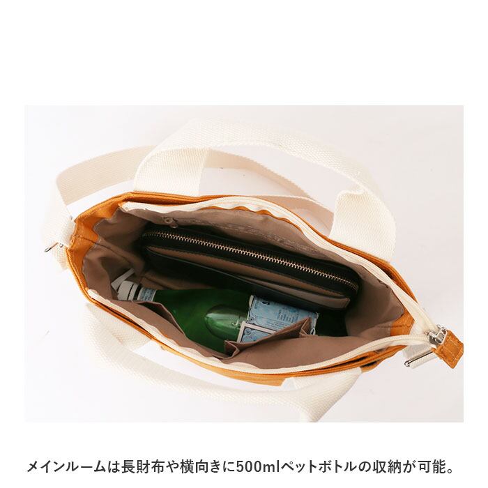 ・メインルームは長財布や横向きに500mlペットボトルの収納が可能。
