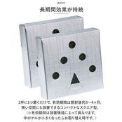 ・1坪に1つ置くだけで、有効期間は開封後約3~4ヶ月。狭い空間にも設置できるコンパクトなスクエア型。(※有効期間は設置環境によって異なります。中のゲルが小さくなったらお取り替え時です。)
