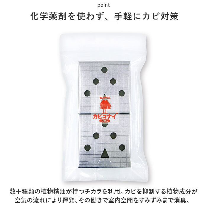 森の生活 カビコナイ 2個入り 通販 防カビ剤 フィトンα カビ かび 植物抽出成分 カビの繁殖の抑制 消臭 フィトン 浴室 窓際 部屋干し 梅雨 湿気 湿度 天然成分 浴室 洗面所 生活雑貨 日用品
