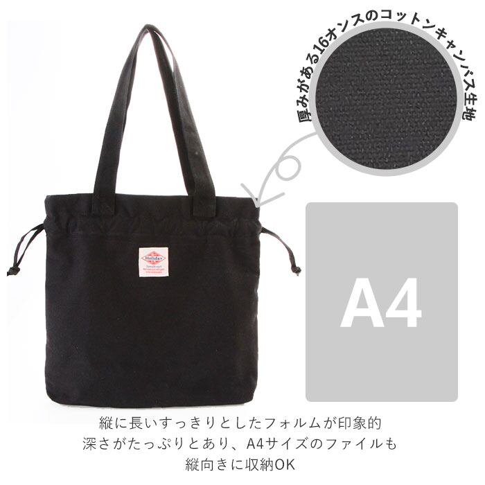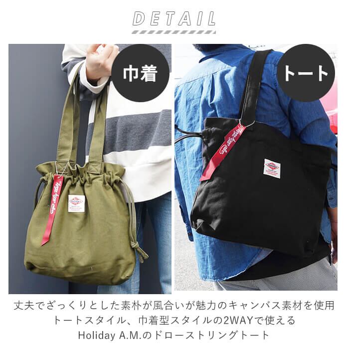 トートバッグ レディース 大きめ 通販 メンズ 2way キャンバス 布 帆布 おしゃれ シンプル 無地 ロゴ 通勤 通学 巾着 大容量 Holiday A.M. ホリデーエーエム KB096 ドローストリング2wayトート