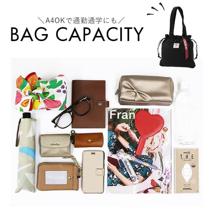 ・通常のトートスタイルはもちろん、開口部のコットンの紐を絞れば、巾着型のキュートなフォルムのカバンに変身!その日の気分に合わせて、二つのスタイルを使い分けできるのが嬉しい♪