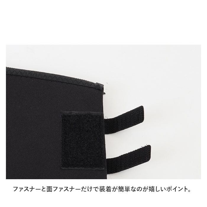 ・ファスナーと面ファスナーだけで装着が簡単なのが嬉しいポイント。