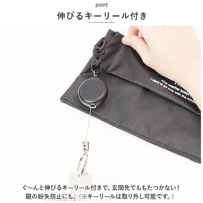 ・ぐ~んと伸びるキーリール付きで、玄関先でももたつかない!鍵の紛失防止にも。(※キーリールは取り外し可能です。)