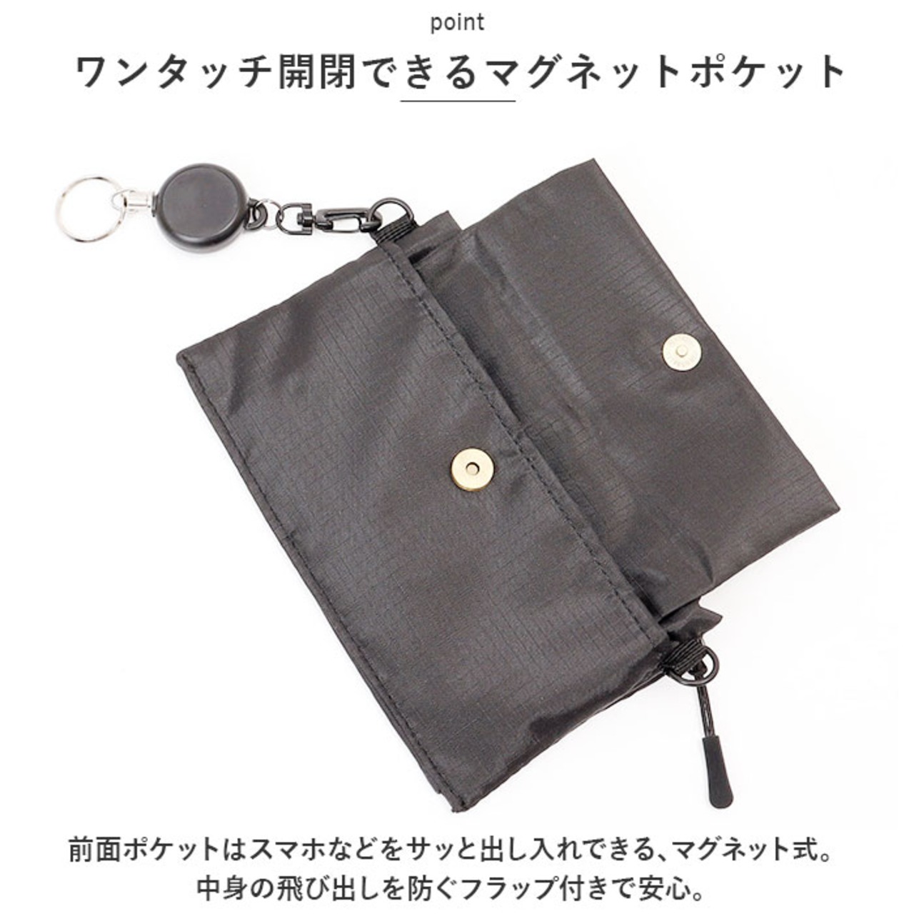 【ワンタッチ開閉できるマグネットポケット】