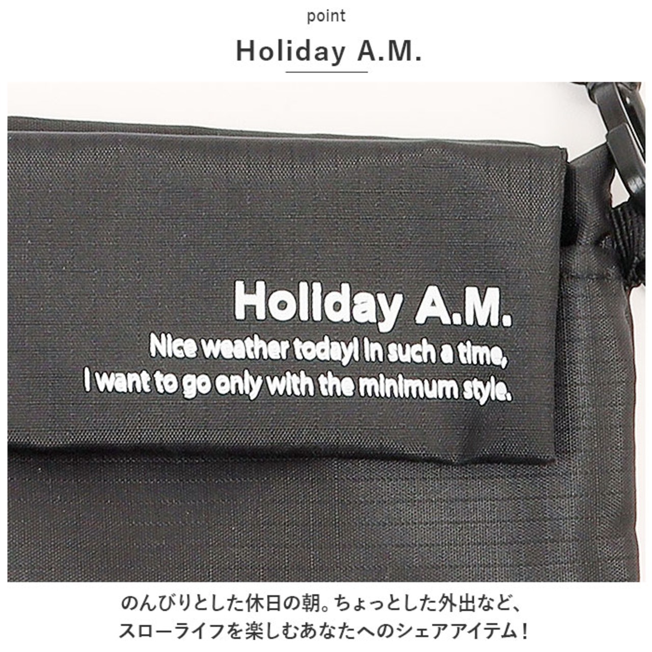 ・Holiday A.M.のロゴプリント入り。カジュアルコーデにポイントをプラス☆