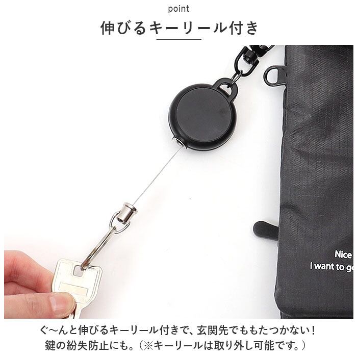 ・ぐ~んと伸びるキーリール付きで、玄関先でももたつかない!鍵の紛失防止にも。(※キーリールは取り外し可能です。)