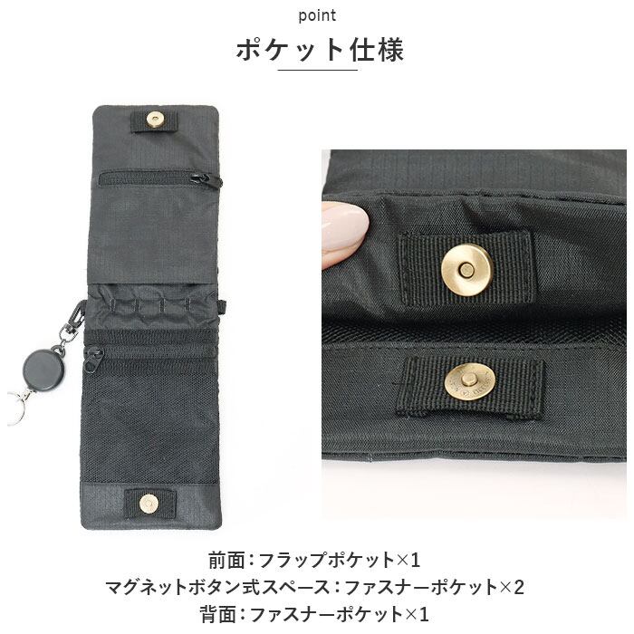 ・マグネットボタン式スペース:ファスナーポケット×2