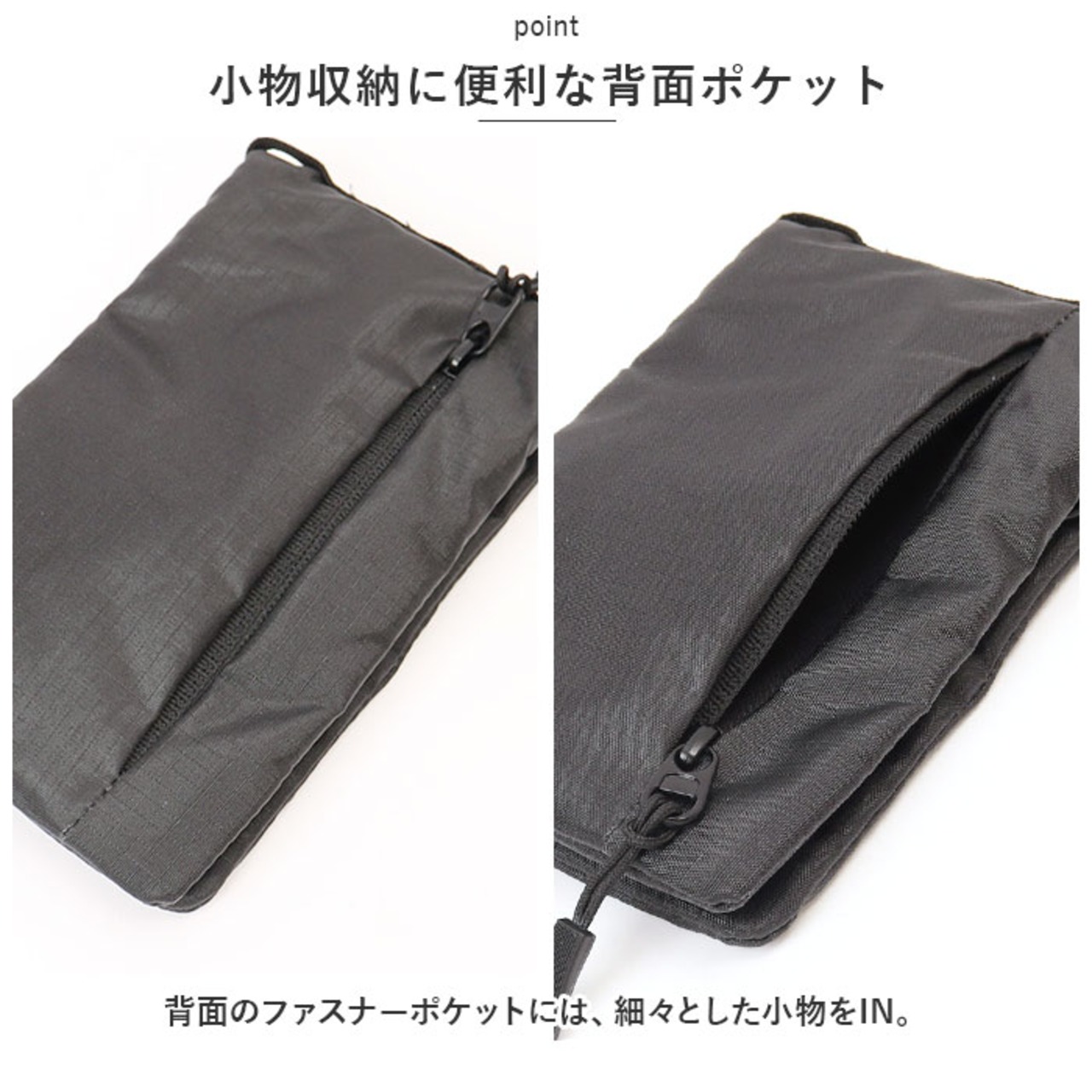 ・背面:ファスナーポケット×1