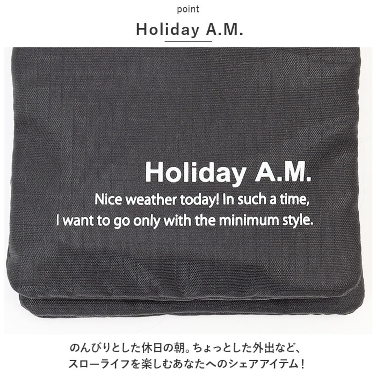 ・Holiday A.M.のロゴプリント入り。カジュアルコーデにポイントをプラス☆