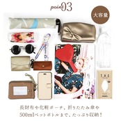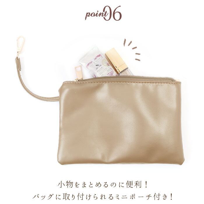 ・アイディア次第でアレンジ自在!コスメ類やモバイル小物をまとめるのに便利なストラップ付インナーポーチが付属。