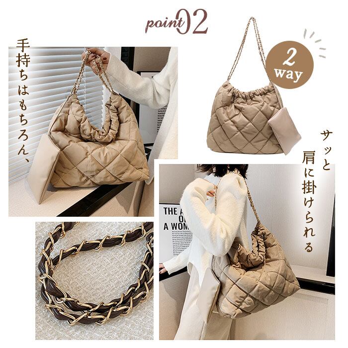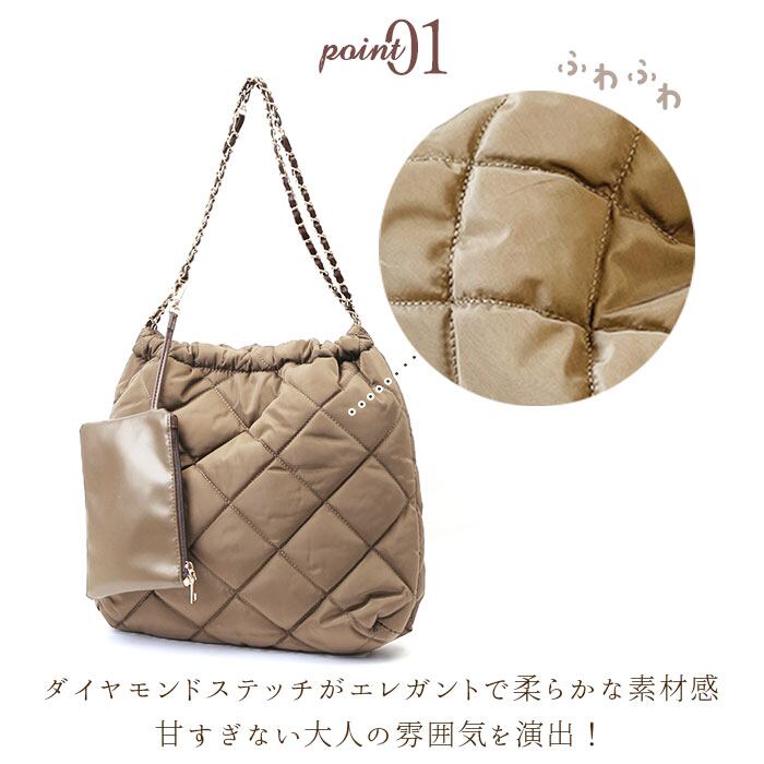 ・ふんわり柔らかな素材感で、ちょっぴり大人の雰囲気を演出!スタイルのアクセントになる「キルティング・ショルダーバッグ」が新登場。