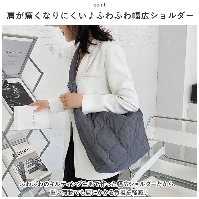 ・ふわふわのキルティング生地で作った幅広ショルダーだから、重い荷物でも肩にかかる負担を軽減♪