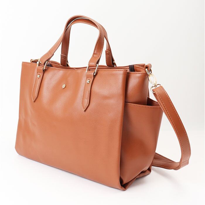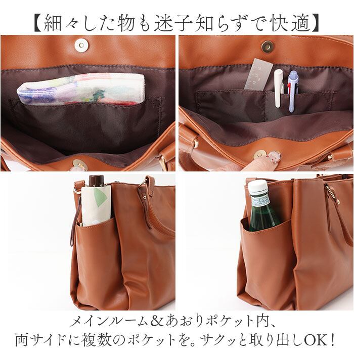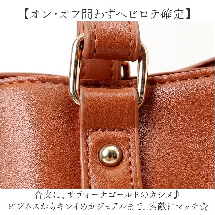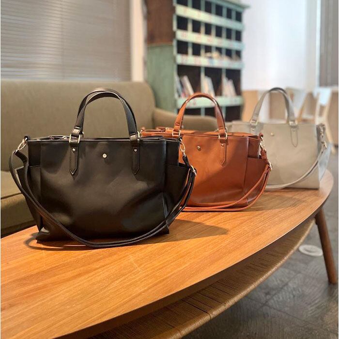 ・落ち着きのある上品な印象で、収納力も!「Lafiel サティーナカシメ2WAYバッグ」。