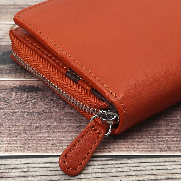 ・開口部はラウンドファスナー仕様。内側は仕切り付きだから、小銭の出し入れもラクラク。