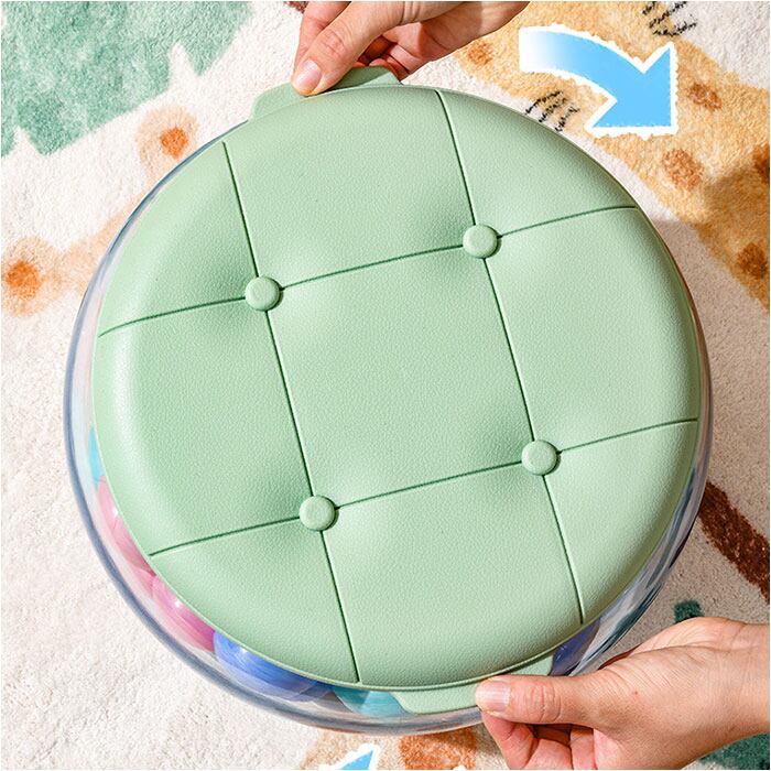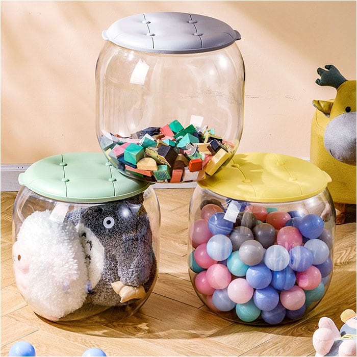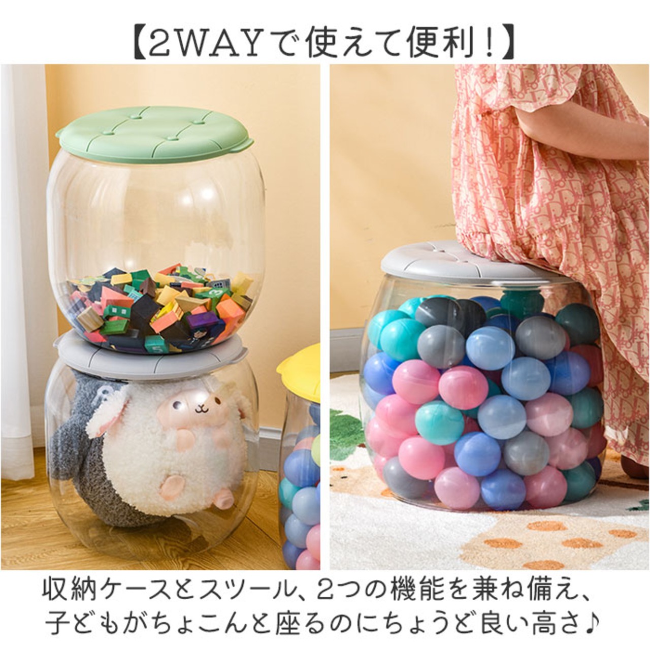 ・ごちゃつきがちなお子さまのおもちゃをかわいく収納できる「収納スツール クリア フタ付き」