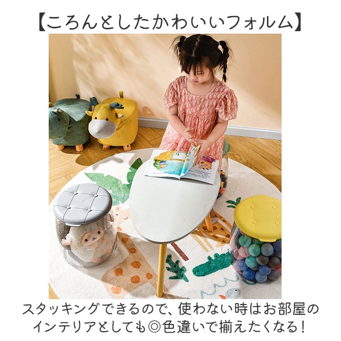 ・収納ケースとスツール、2つの機能を兼ね備え、子どもがちょこんと座るのにちょうど良い高さ♪