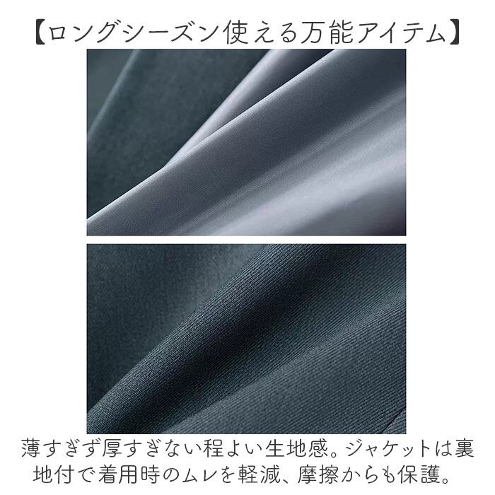 ・薄すぎず厚すぎない程よい生地感。ジャケットは裏地付で着用時のムレを軽減、摩擦からも保護。