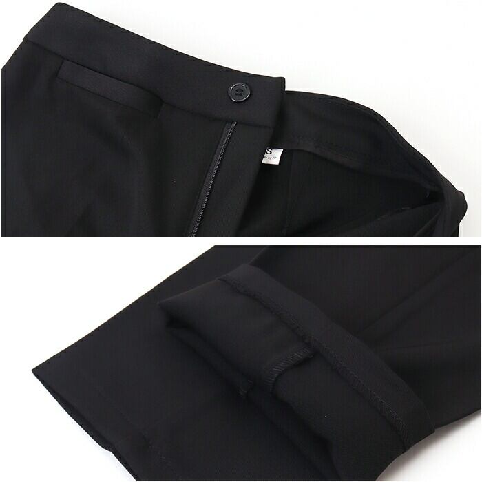 ・フロントファスナー&ボタン付パンツと、バックファスナー付スカート。ボディラインに馴染む◎