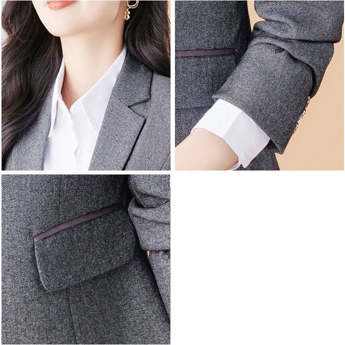 ・肩パッドでシルエットをキープ&エレガントなラペルデザイン。スリムに魅せる絶妙な仕立て♪