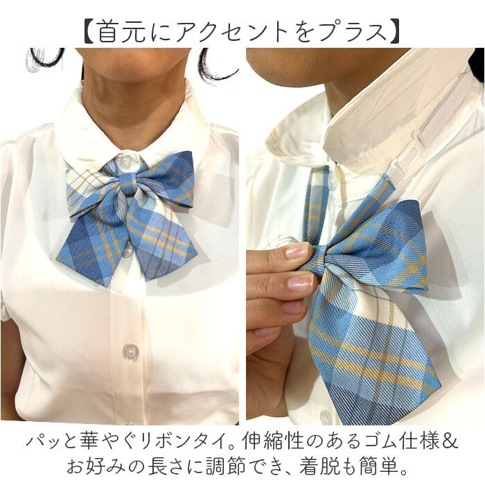 ・パッと華やぐリボンタイ。伸縮性のあるゴム仕様&お好みの長さに調節でき、着脱も簡単。
