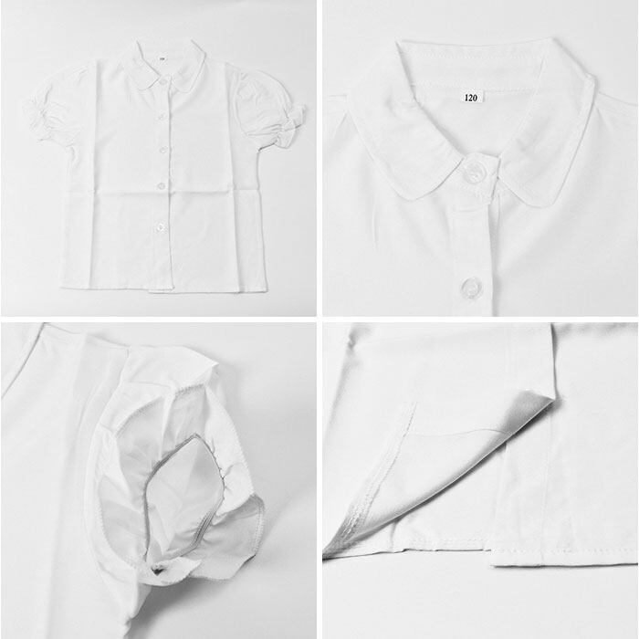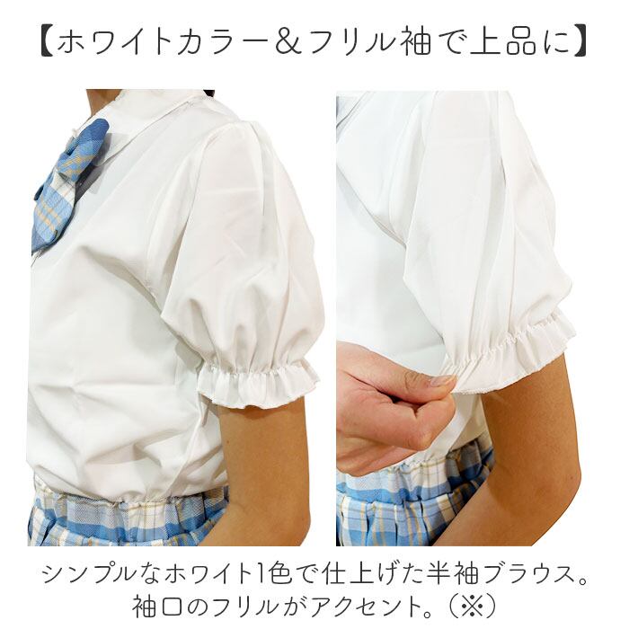 ・シンプルなホワイト1色で仕上げた半袖ブラウス。袖口のフリルがアクセント。