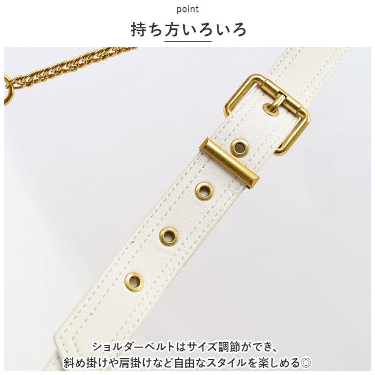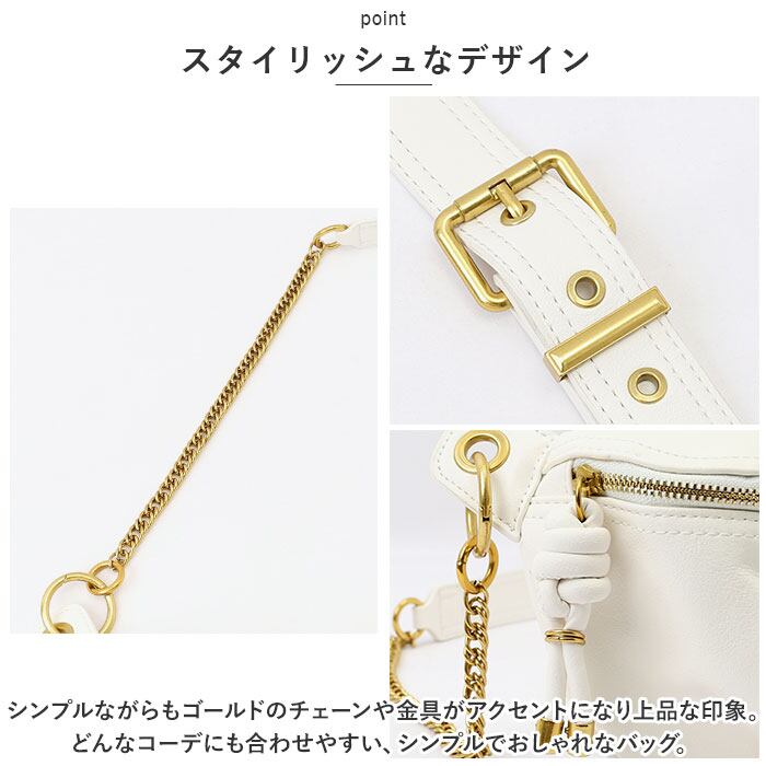 ・シンプルながらもゴールドのチェーンや金具がアクセントになり上品な印象。どんなコーデにも合わせやすい、シンプルでおしゃれなバッグ。