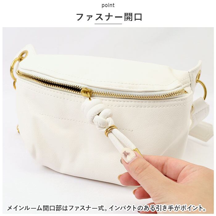 ・メインルーム開口部はファスナー式。インパクトのある引き手がポイント。