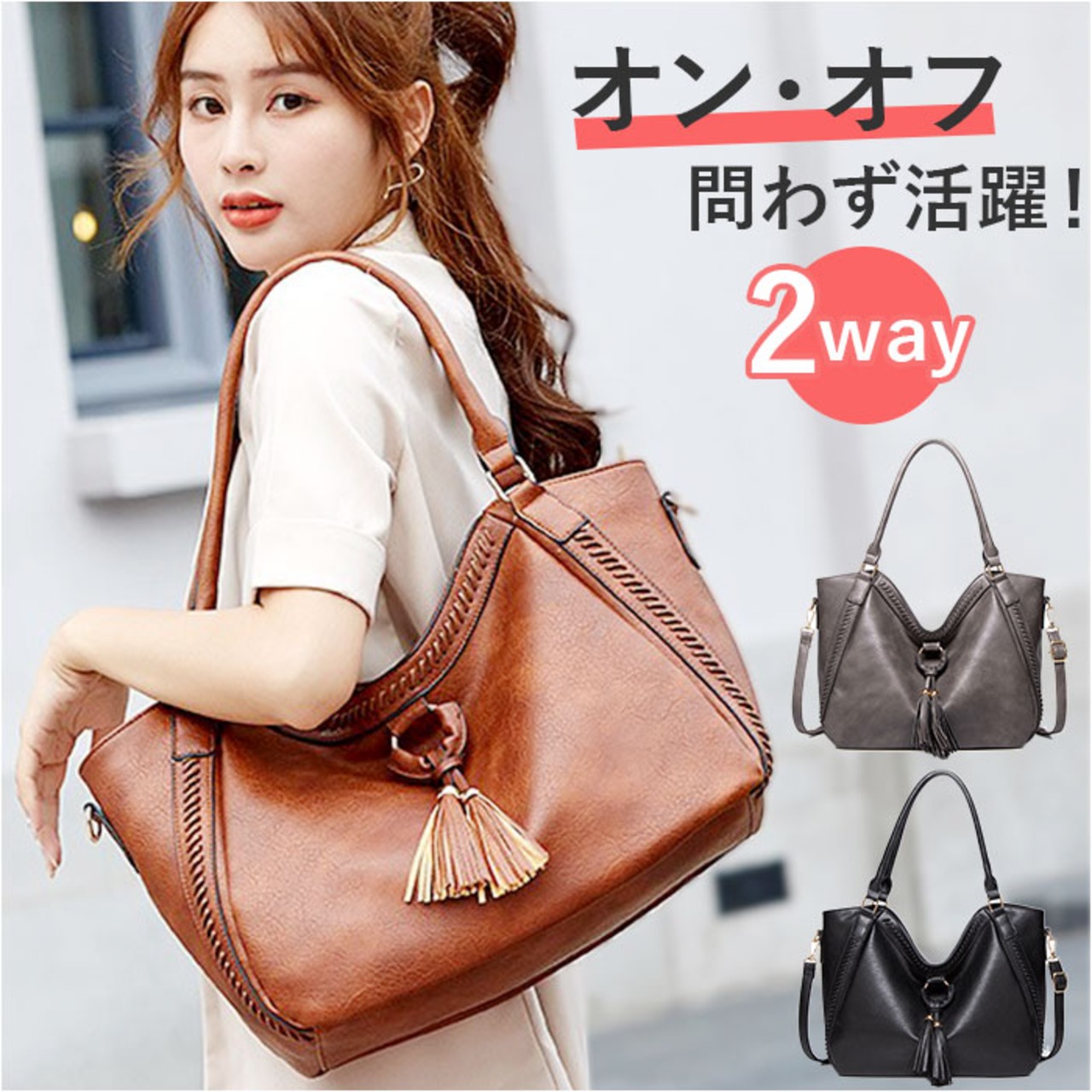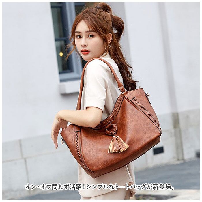 トートバッグ レディース 通勤 通販 大きめ A4 トートバック ビジネス トート 2way ショルダー ビジネスバッグ ショルダーバッグ 肩掛け 斜めがけ ビジネスバック 大容量 おしゃれ シンプル 無地 きれいめ 上品 合皮 PU フェイクレザー タッセル チャーム付き