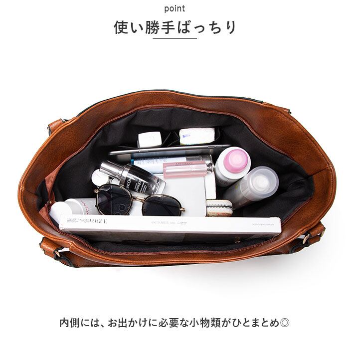 ・トートバッグとしてはもちろん、長さ調節可能なショルダーベルトを取り付けて、斜め掛けもOK。