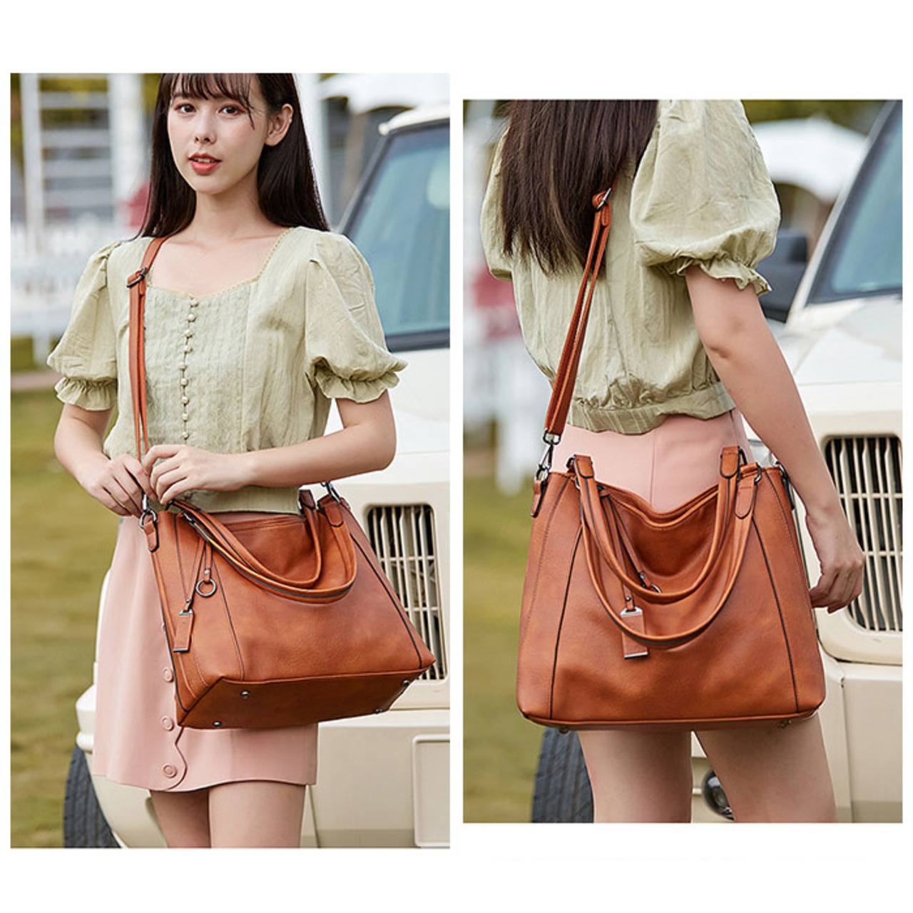 ・トートバッグとしてはもちろん、長さ調節可能なショルダーベルトを取り付けて、斜め掛けもOK。