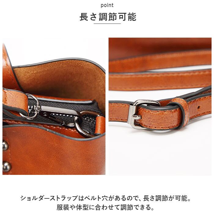 ・ショルダーストラップはベルト穴があるので、長さ調節が可能。服装や体型に合わせて調節できる。