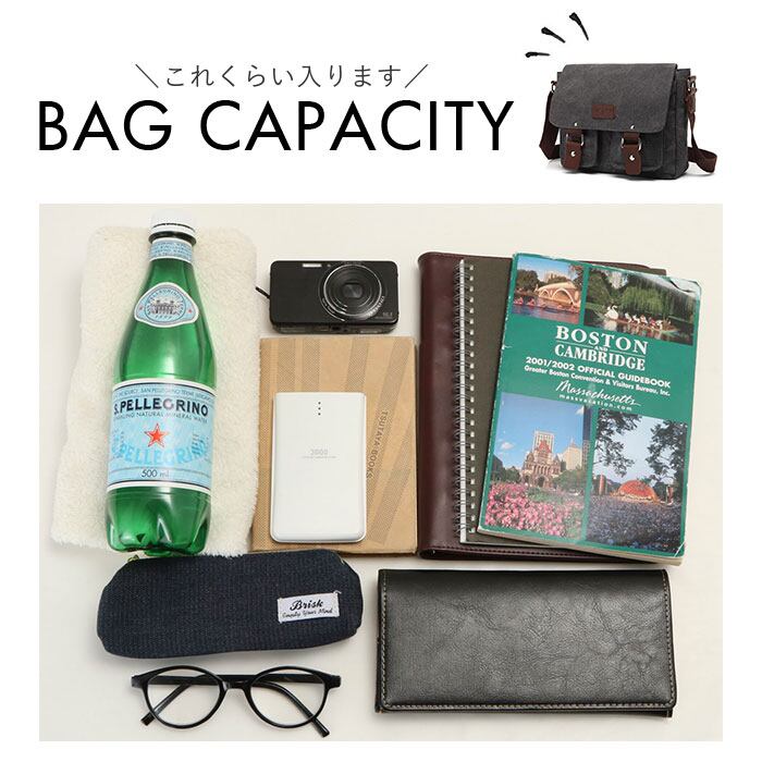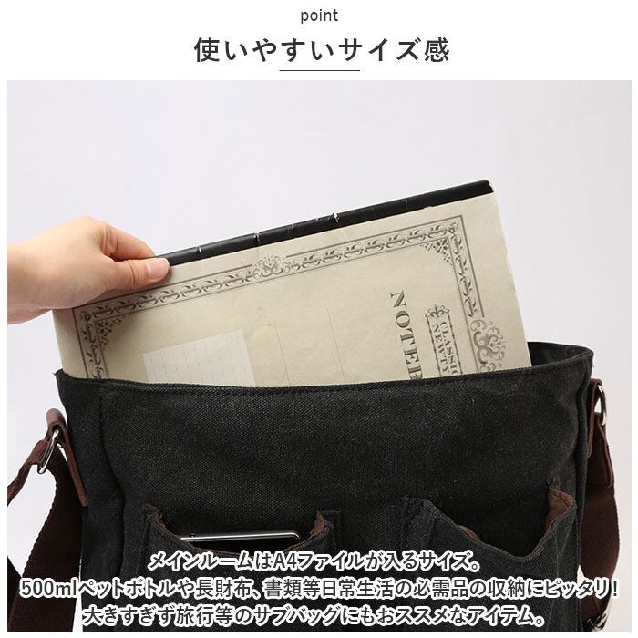 500mlペットボトルや長財布、書類等日常生活の必需品の収納にピッタリ!大きすぎず旅行等のサブバッグにもおススメなアイテム。