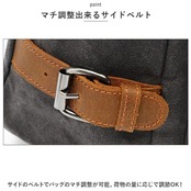 ・サイドのベルトでバッグのマチ調整が可能。荷物の量に応じで調節OK!