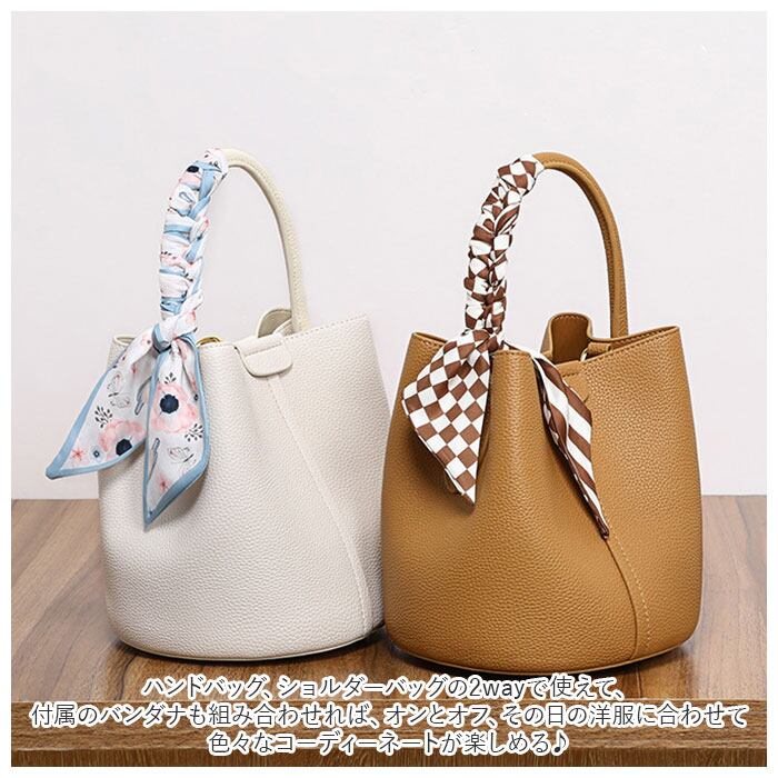 ・ハンドバッグ、ショルダーバッグの2wayで使えて、付属のバンダナも組み合わせれば、オンとオフ、その日の洋服に合わせて色々なコーディーネートが楽しめる♪
