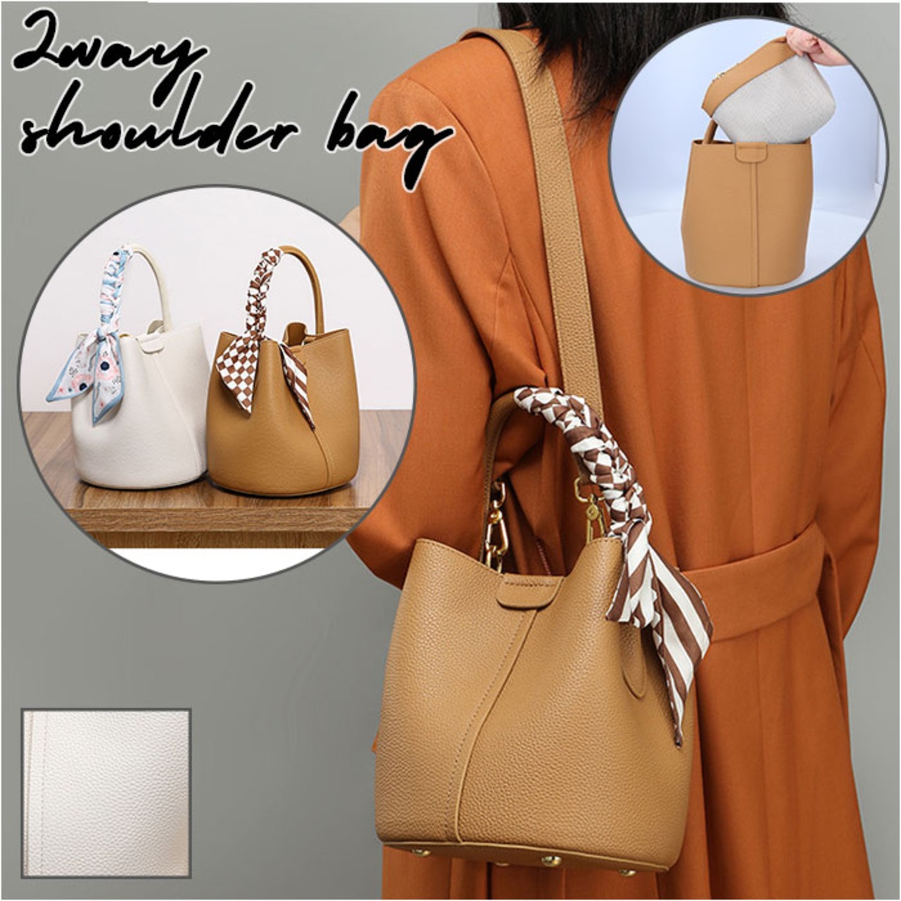 ・本革のようなシボ感がオシャレなバケツ型ショルダーバッグが登場♪