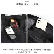 ・内側にファスナーポケット×1、外側にはオープンポケット×8を装備!小物を仕分けしやすいつくり。