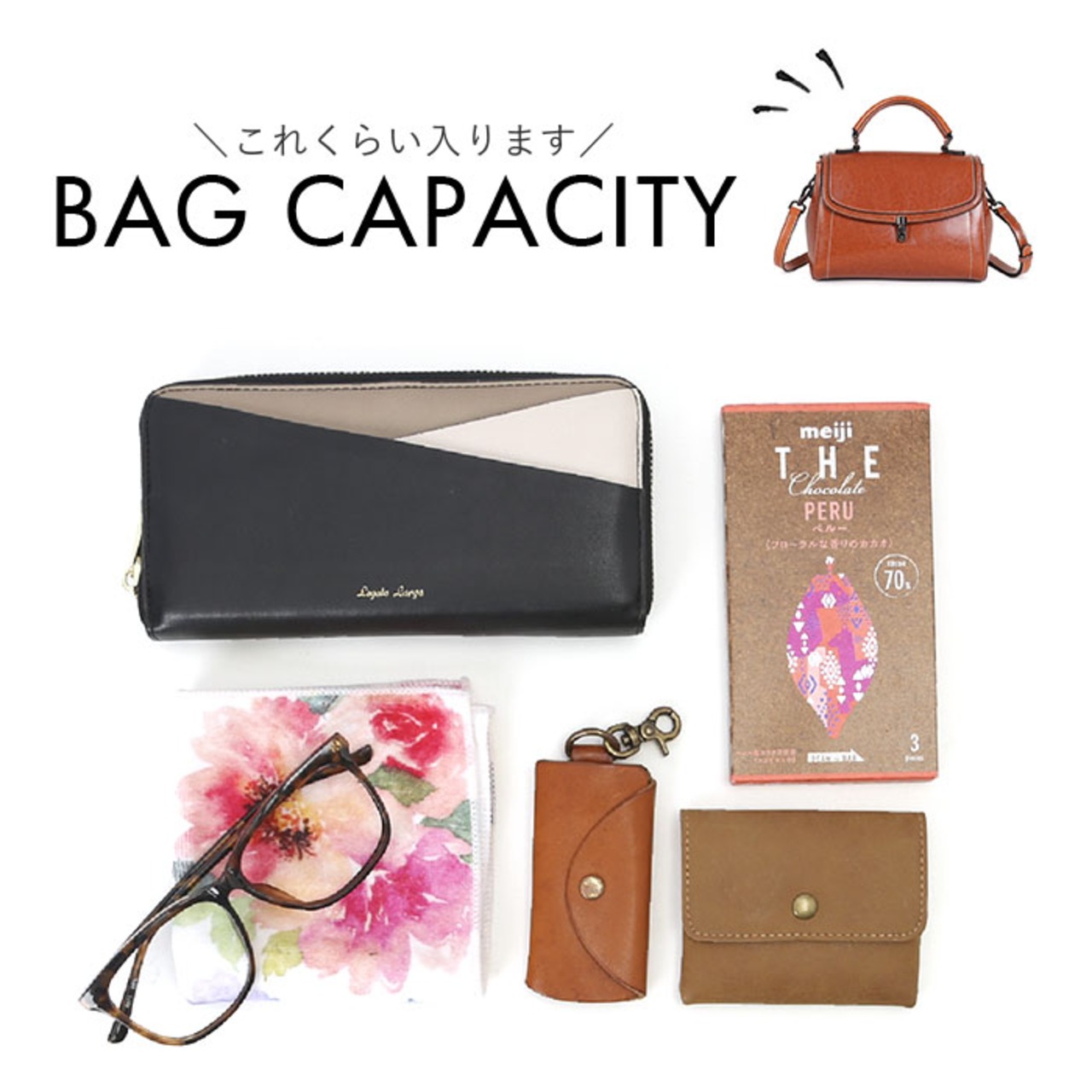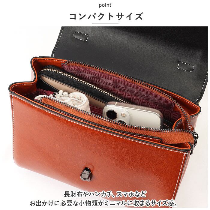 ・長財布やハンカチ、スマホなどお出かけに必要な小物類がミニマルに収まるサイズ感。