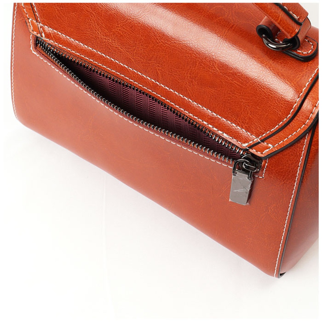 ・艶のあるスプリットレザーを使用した、ビンテージ感のある上品なデザイン。