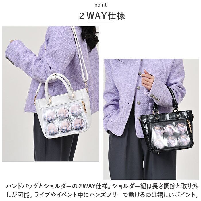 痛バッグ 痛バ 痛ショルダー ショルダ 通販 推し活バッグ 推し ハンドバッグ オタ活バッグ トート 小さめ かわいい おしゃれ かばん カバン 鞄 バッグ デコ 推し事 2way 缶バッジ 見せバッグ 自立 クリア ライブ イベント 大人 学生 サブバッグ