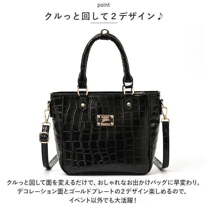 ・クルっと回して面を変えるだけで、おしゃれなお出かけバッグに早変わり。デコレーション面とゴールドプレートの2デザイン楽しめるので、イベント以外でも大活躍!