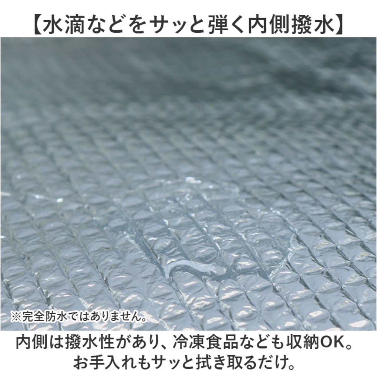 ・内側は撥水性があり、冷凍食品なども収納OK。お手入れもサッと拭き取るだけ。