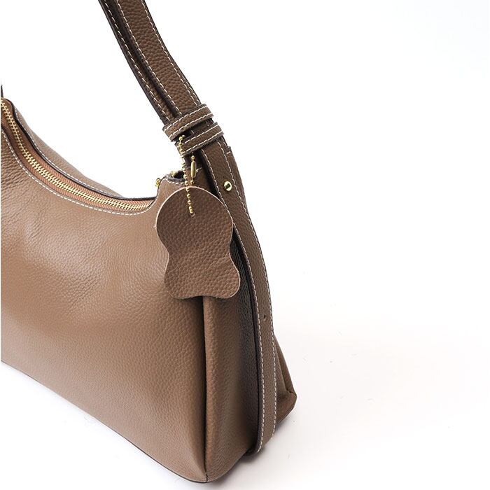 ・スプリットレザーの生地にシボ感をプラス。フォーマルな場にも馴染む大人っぽさが魅力。